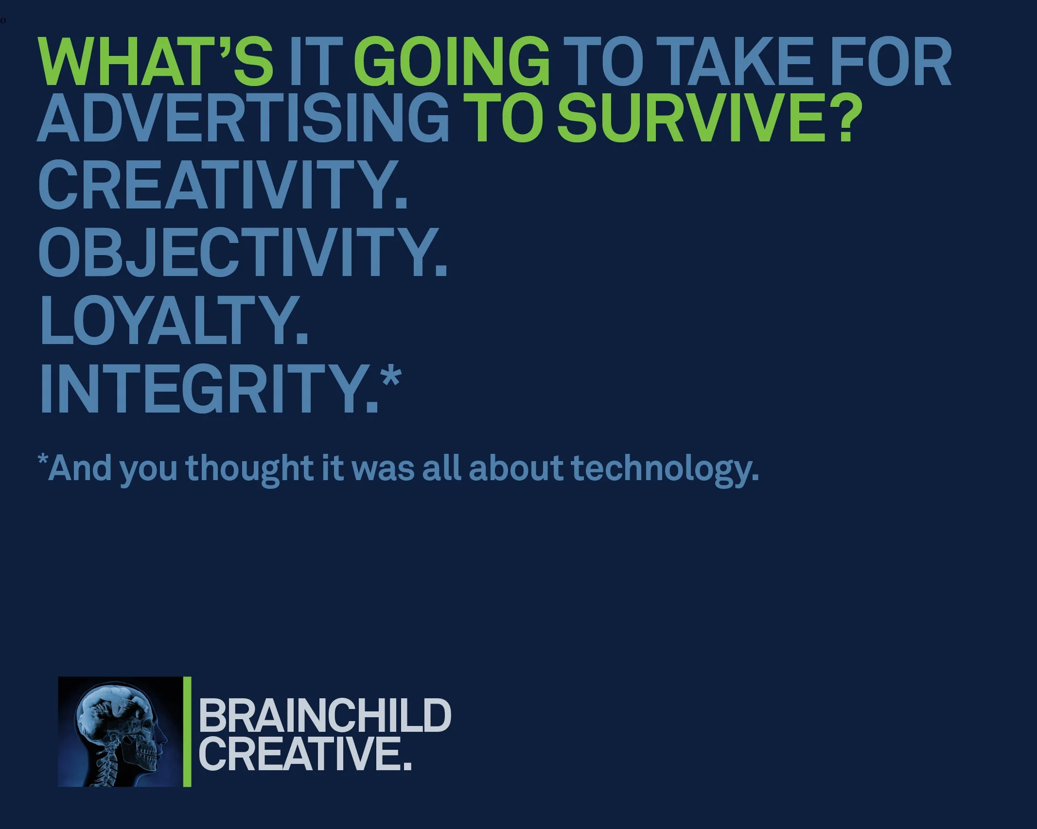 Loyalty — putting the brand’s interest first, and not the agency's. Sounds like that should be an obvious duh, but when you think about trillion-dollar platforms promising paradise within their razorwire-lined walled gardens, plus all three of the biggest ad holding companies selling their own pre-purchased media for undisclosed profits, well, caveat your emptor and your ass.